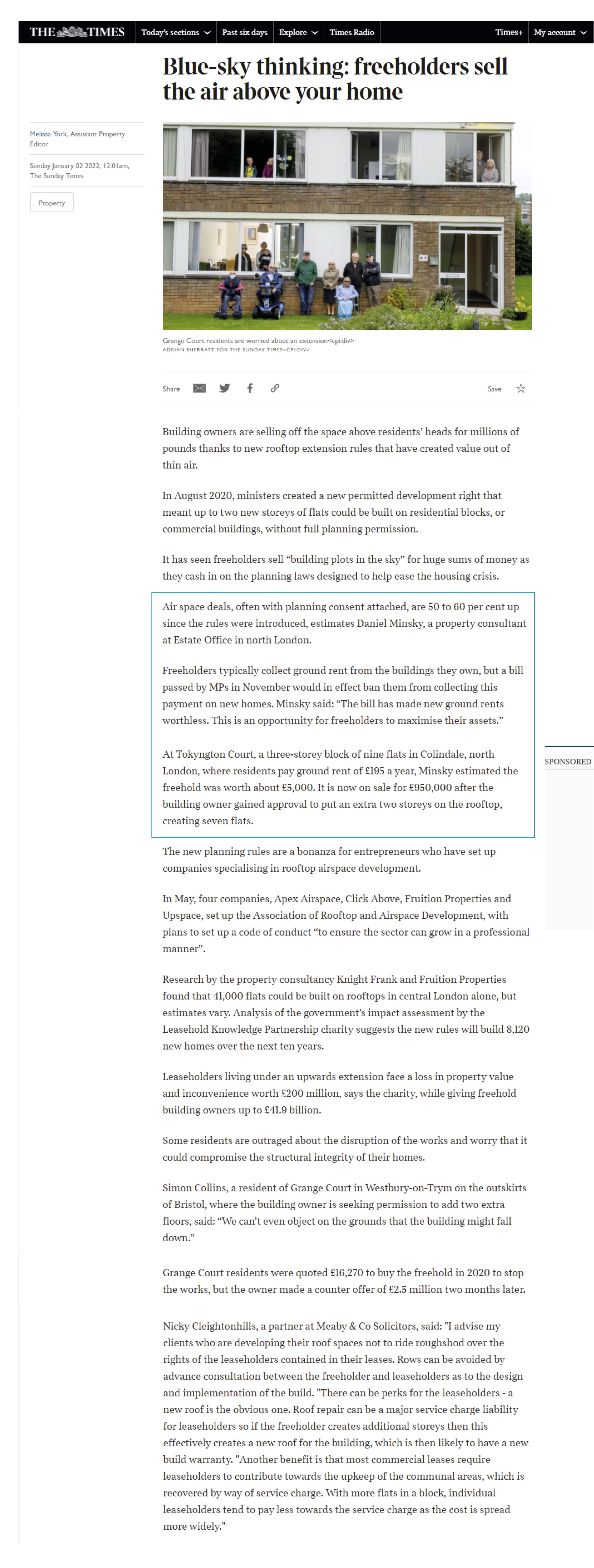 Managing Director Daniel Minsky gives his expert advice regarding rooftop extensions and airspace agreements in The Sunday Times.